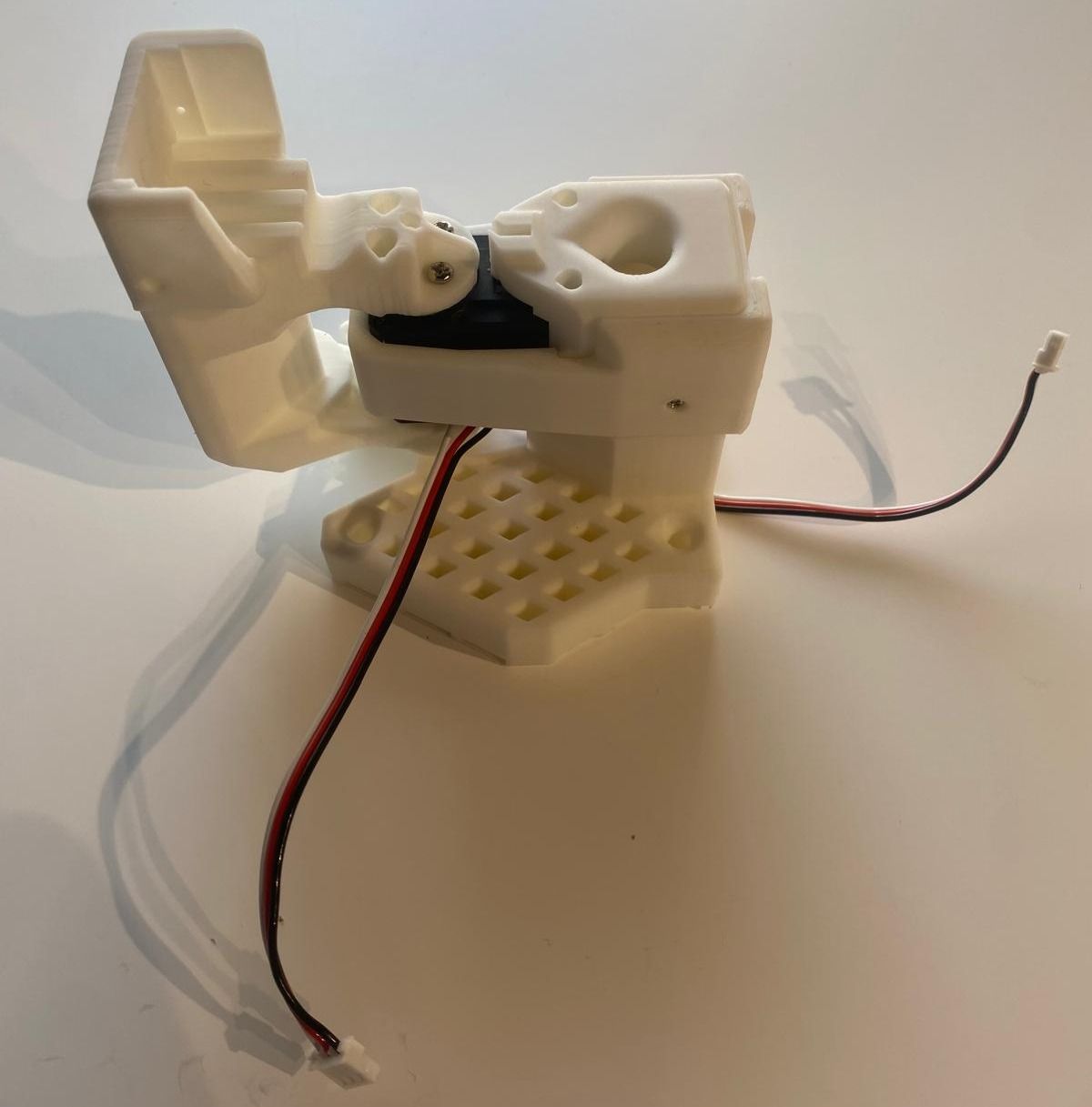 Insert the gripper motor, secure it with 3 screws on each side, attach a motor horn using a horn screw, and connect the motor wire.